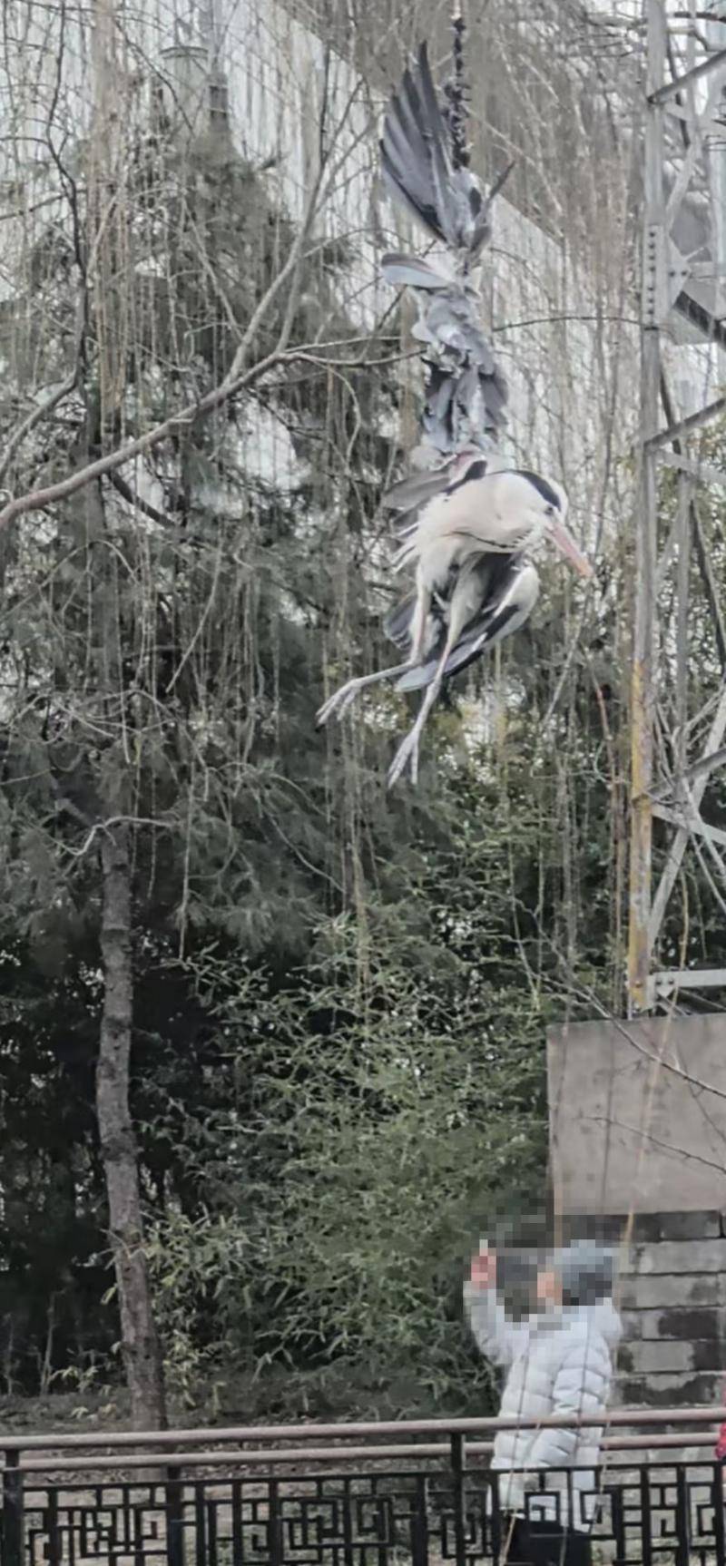 14日上午9时许,有市民路过北二环护城河时,发现一只鸟在空中不断挣扎,疑似被风筝线缠绕,无法脱身。由于被困位置距离岸边约10米,且高度较高,普通市民难以施救,于是立即到附近的地坛消防救援站求助。