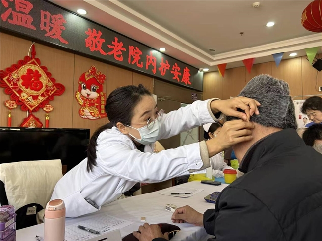 据了解,石景山民族养老院内居住的多为70岁以上、行动不便的高龄长者,高血压、糖尿病等慢性健康问题较为突出。针对这一情况,医院精心策划,制定以中医把脉、血压血糖测量、耳豆贴敷等为主的义诊方案,让老人足不出户就能享受贴心医疗服务。