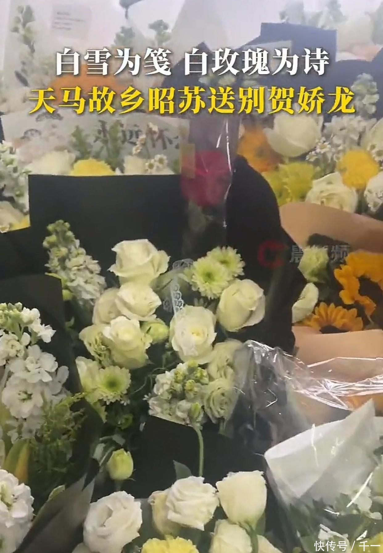 在殡仪馆的一边,早就堆满了花圈。这张照片里,网友们把鲜花摆在雪地上,还把蜡烛拼成了一个心形,然后为贺娇龙低头默哀。有人说,这几天都没降雪,偏偏今天开始大雪,感觉像是天也在为此伤心似的。大家之所以坚持不懈地赶来为贺局长送行,主要是因为她在生前为老百姓做了不少实实在在的好事。据说,贺娇龙在新疆待了27年,从基层起步,一步步往上爬,后来还担任过副县长,后来又当上了文旅副局长,还被委托为当地农产品的推广大使。为了制作出更精彩的宣传片,她经常骑马拍摄,那段在雪地里挥鞭策马的视频,点击量飙到6亿,不但带火了新疆的冬季旅游,也开启了她用流量帮助农民的新篇章。